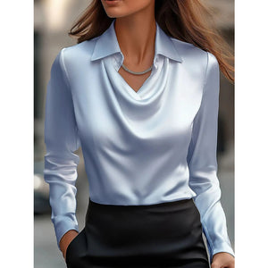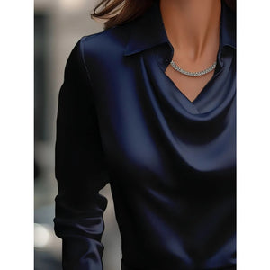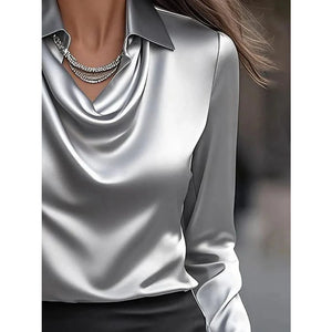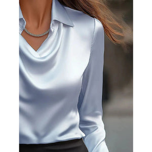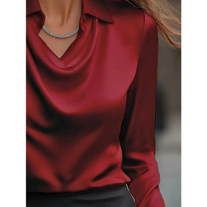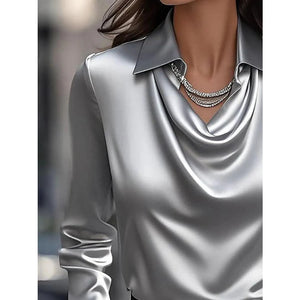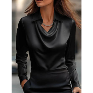 Full Size Long Sleeve Blouse with Collar Plus Size