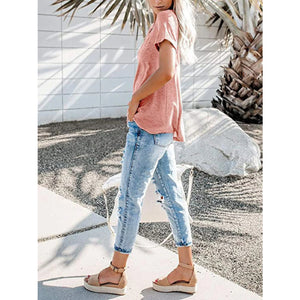 Full Size Notched Short Sleeve T-Shirt Plus Size