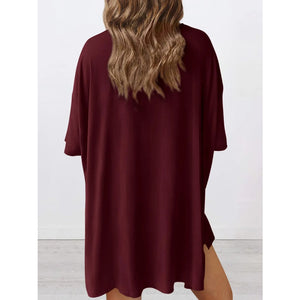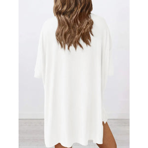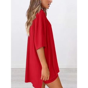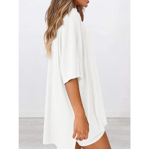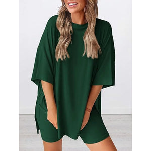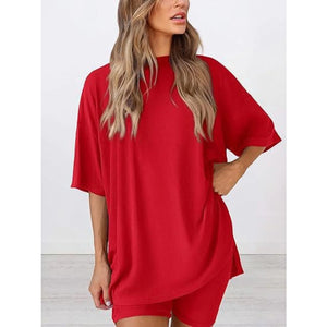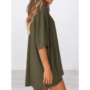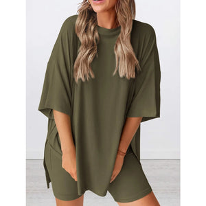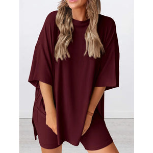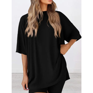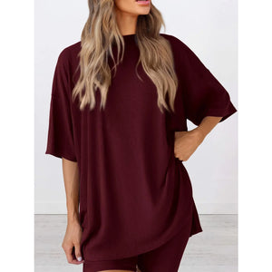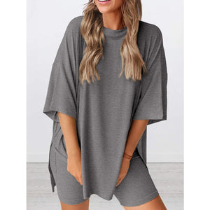 Full Size Oversized Slit Round Neck Top and Shorts Lounge Set Plus Size