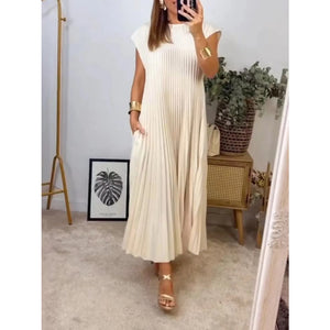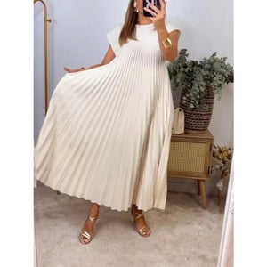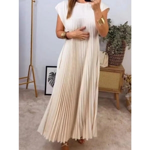 Full Size Pleated Round Neck Maxi Dress Plus Size