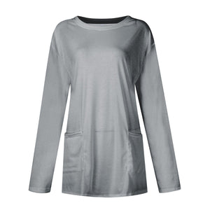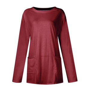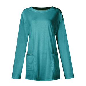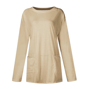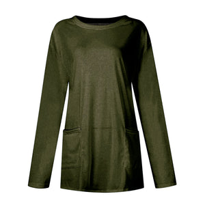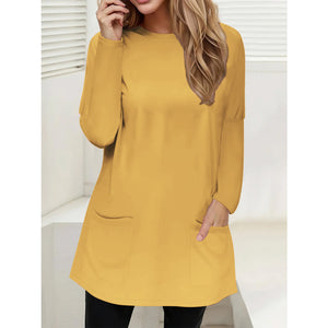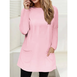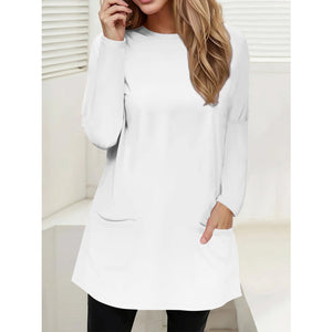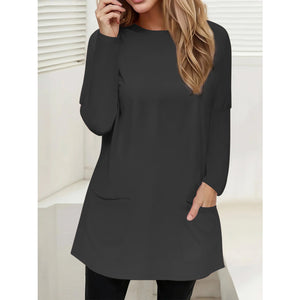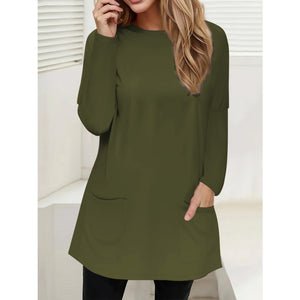 Full Size Pocketed Round Neck Long Sleeve T-Shirt