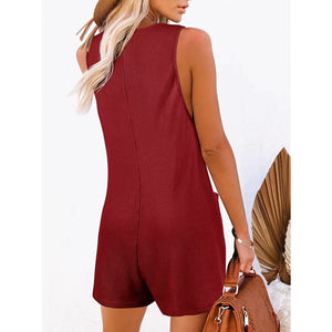 Full Size Pocketed Scoop Neck Sleeveless Romper