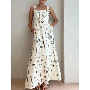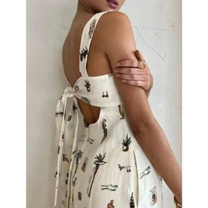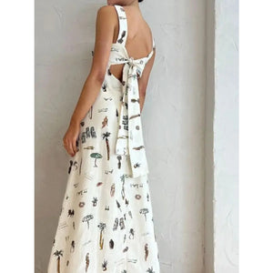 Full Size Printed Square Neck Tie Back Maxi Dress Plus Size
