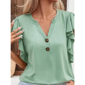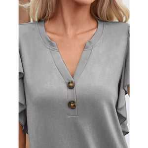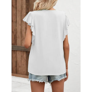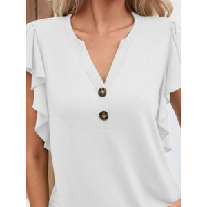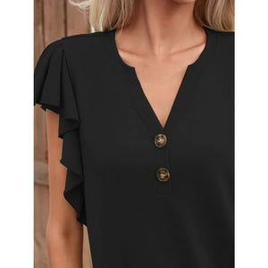 Full Size Ruffled Notched Cap Sleeve Blouse Plus Size