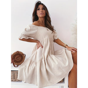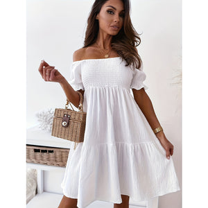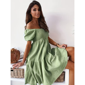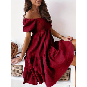 Full Size Ruffled Off-Shoulder Short Sleeve Dress
