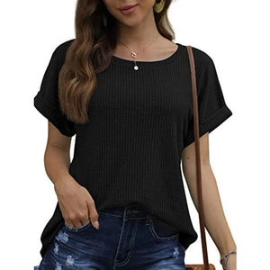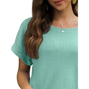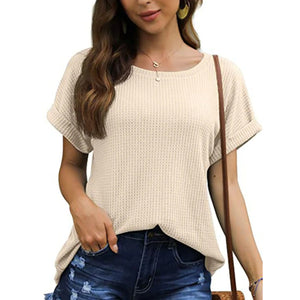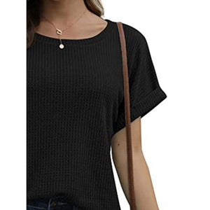 Full Size Waffle Knit Relaxed Fit T-Shirt Plus Size