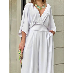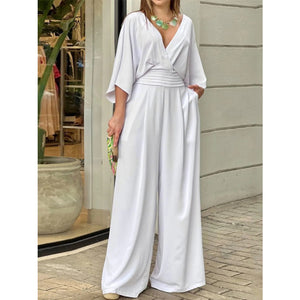 Full Size Wide-Leg Wrap Jumpsuit with Kimono Sleeves Plus Size