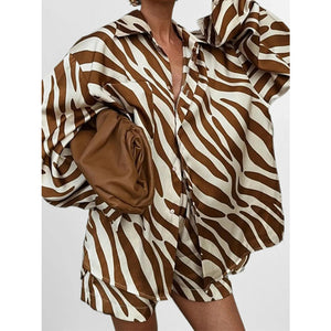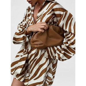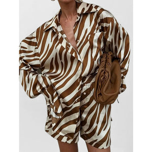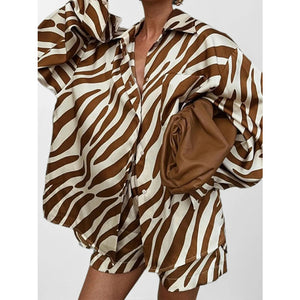 Full Size Zebra Print Shirt and Shorts Matching Set Plus Size