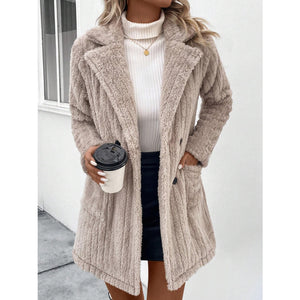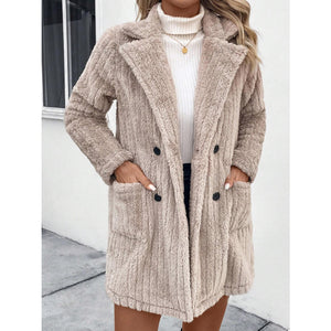 Fuzzy Button Up Long Sleeve Coat with Pockets