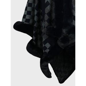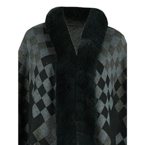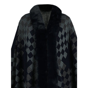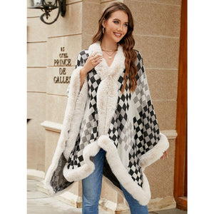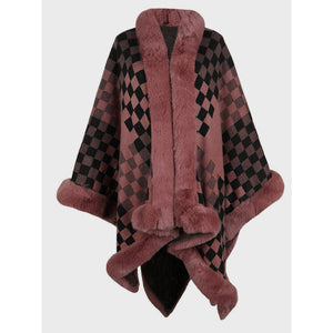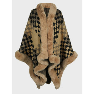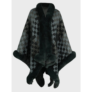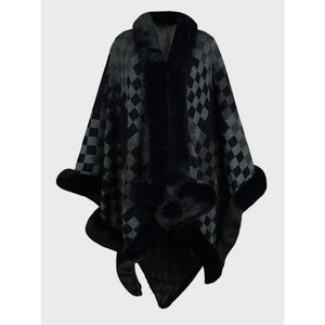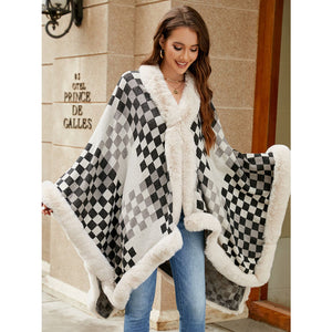 Fuzzy Checkered Long Sleeve Poncho