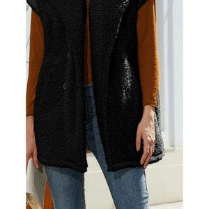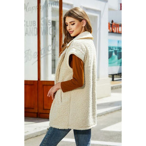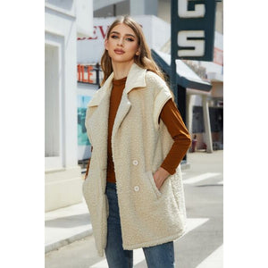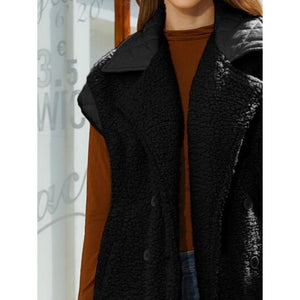 Fuzzy Collared Neck Button Up Vest Coat