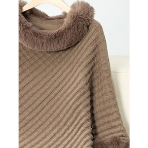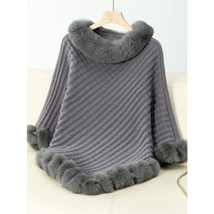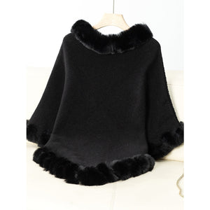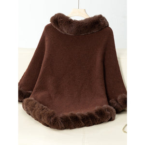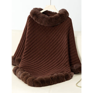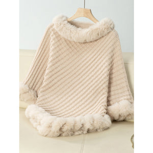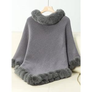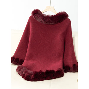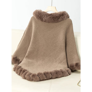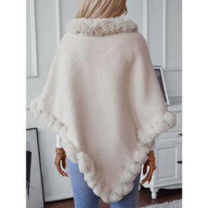 Fuzzy Trim Texture Three-Quarter Sleeve Poncho