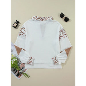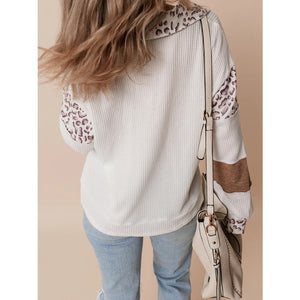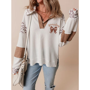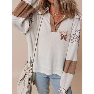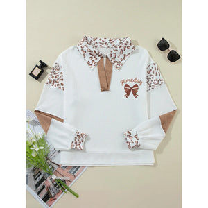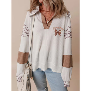 Game Day Bow Embroidered Leopard Color Block Patchwork Top