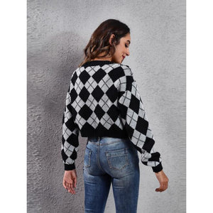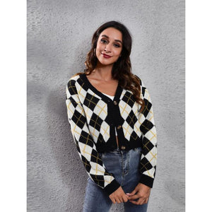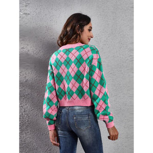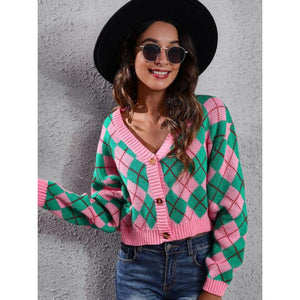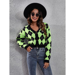 Geometric Button Up Long Sleeve Cardigan