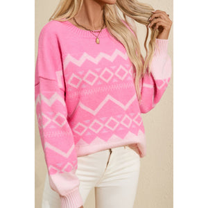 Geometric Drop Shoulder Long Sleeve Sweater