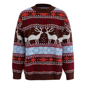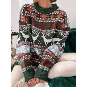 Geometric Round Neck Dropped Shoulder Sweater
