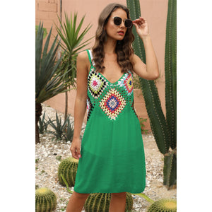Geometric V-Neck Spaghetti Strap Cover Up Dress