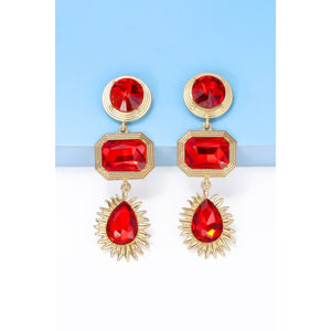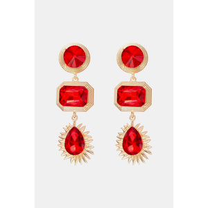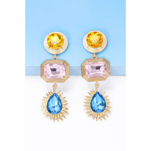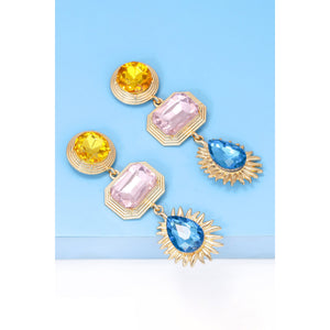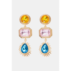Geometrical Shape Zinc Alloy Frame Glass Dangle Earrings