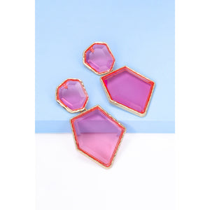 Geometrical Shape Zinc Alloy Frame Resin Dangle Earrings