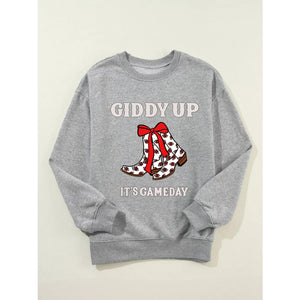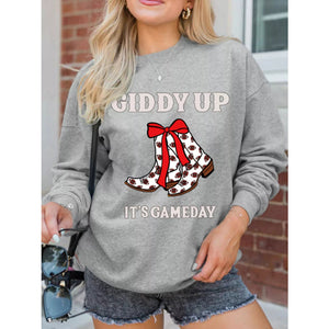 GIDDY UP ITS GAME DAY Cowgirl Boots Graphic Sweatshirt