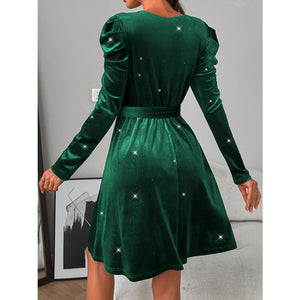 Glitter Round Neck Puff Sleeve Dress