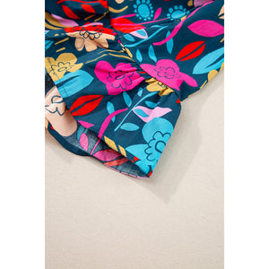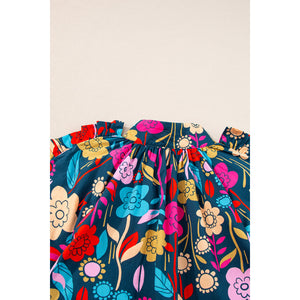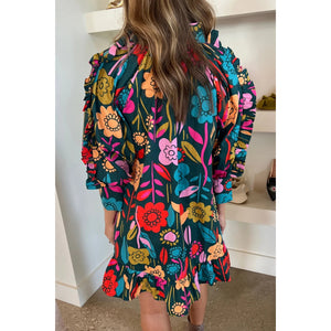 Green Floral Print Puff Sleeve Ruffled Mini Dress