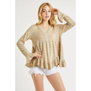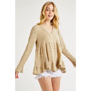 Hailey & Co V-Neck Flounce Sleeve Knit Top