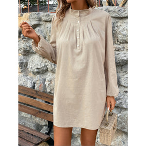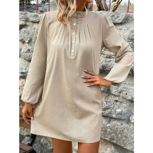 Half Button Mock Neck Long Sleeve Mini Shirt Dress