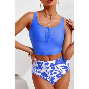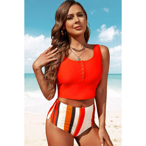 Half Snap Square Neck Tankini Set