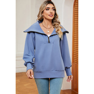 Half Zip Lantern Sleeve Sweatshirt