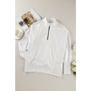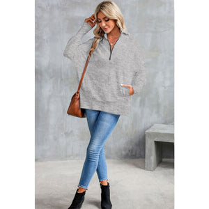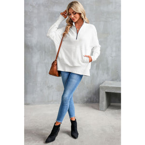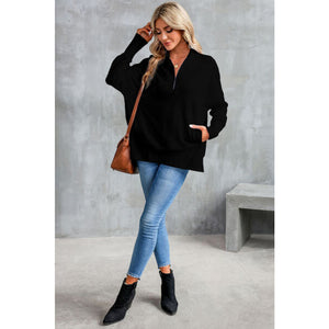 Half Zip Pocketed Dropped Shoulder Sweatshirt