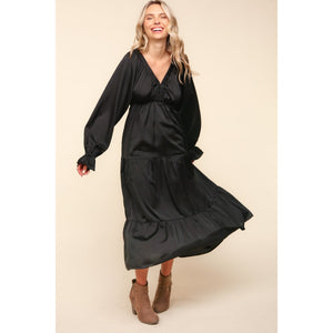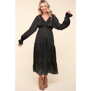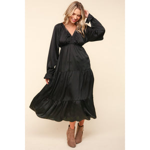 Haptics Flounce Sleeve Tiered Midi Dress with Pockets