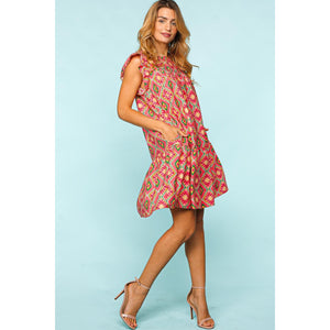 Haptics Full Size Ruffled Printed Dress with Side Pockets