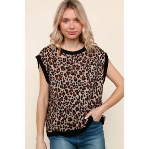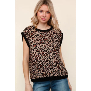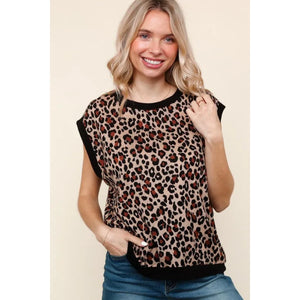 Haptics Leopard Print Dolman Cap Sleeve Knit Top