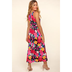 Haptics Pocketed Floral Round Neck Sleeveless Midi Dress