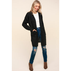 Haptics Stripe Textured Open Front Cardigan with Pockets