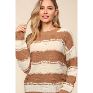Haptics Striped Contrast Distressed Sweater
