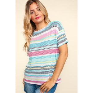The Waffle Stripe Short Sleeve T-Shirt is a casual and laid-back essential for your wardrobe. Its waffle texture and striped design add a touch of visual interest to a classic silhouette. The short sleeves make it perfect for everyday wear during warmer weather. This versatile t-shirt can be easily dressed up or down depending on the occasion. Pair it with jeans for a relaxed look or layer it under a blazer for a more polished ensemble. Add this comfortable and stylish piece to your collection for effortless and timeless style.