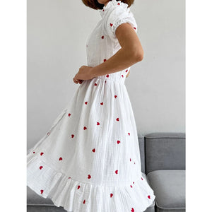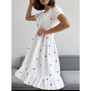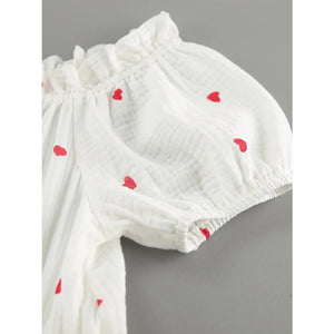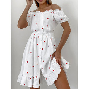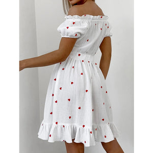 Heart Printed Off-Shoulder Ruffle Mini Dress