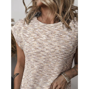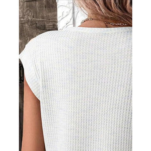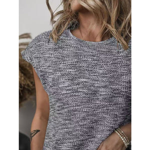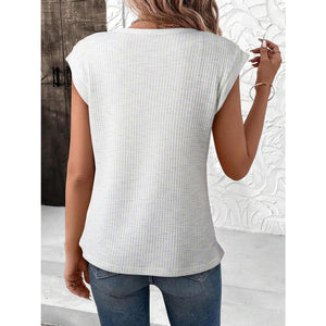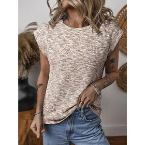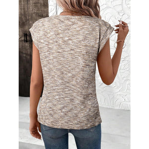 Heathered Round Neck Cap Sleeve T-Shirt