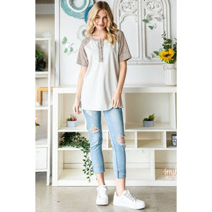 Animal Print Half Button Short Sleeve Top is a trendy and chic piece that adds a touch of wild style to your wardrobe. Featuring an eye-catching animal print pattern and half-button detailing, this top is perfect for making a fashion statement. The short sleeves offer a relaxed and comfortable fit, making it ideal for casual outings or adding a touch of flair to your everyday look. Embrace your wild side with this stylish and versatile top!