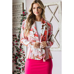 A shawl floral open blazer is a stylish and elegant piece that adds a feminine touch to your outfit. The floral design on the blazer brings a pop of color and visual interest, making it a versatile and chic choice for various occasions. The shawl collar adds a sophisticated element to the blazer, elevating your look with a touch of sophistication.