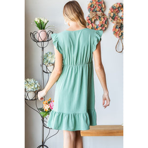 Heimish Full Size Short Sleeve V Neck Ruffled Hem Dress