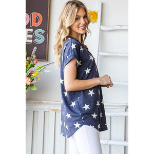 Heimish Full Size Star Print V-Neck Short Sleeve T-Shirt