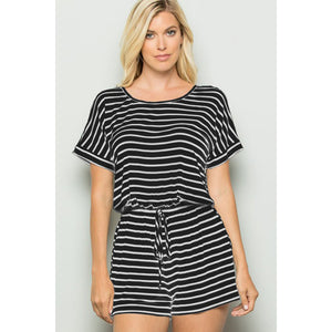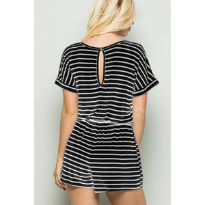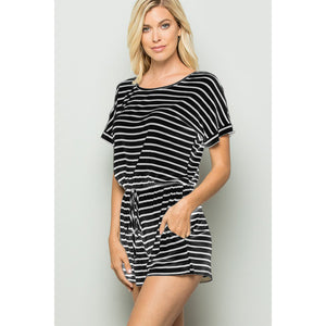 Striped Round Neck Short Sleeve Romper is a stylish and playful one-piece outfit featuring classic stripes and a comfortable round neckline. This romper is perfect for a casual day out or a relaxed weekend look. The short sleeves add a breezy touch, while the romper style offers convenience and effortless chic. With its timeless striped pattern and flattering silhouette, this romper is a versatile and trendy choice for any summer wardrobe.