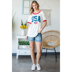 Heimish Full Size USA Contrast Trim Short Sleeve T-Shirt
