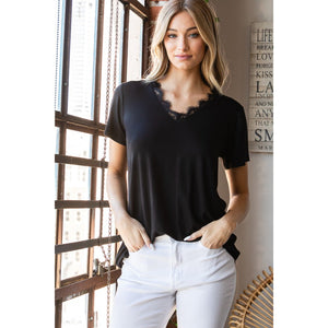 Heimish Lace Detail V-Neck Short Sleeve T-Shirt