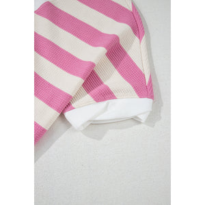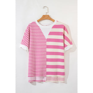 High-Low Striped Round Neck Short Sleeve T-Shirt