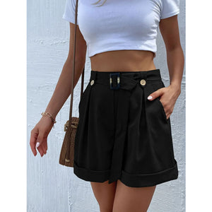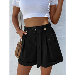 High-Waisted Pleated Shorts with Belt Detail