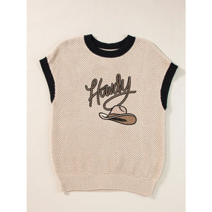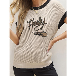 Howdy Cowboy Hat Embroidered Short Sleeve Sweater